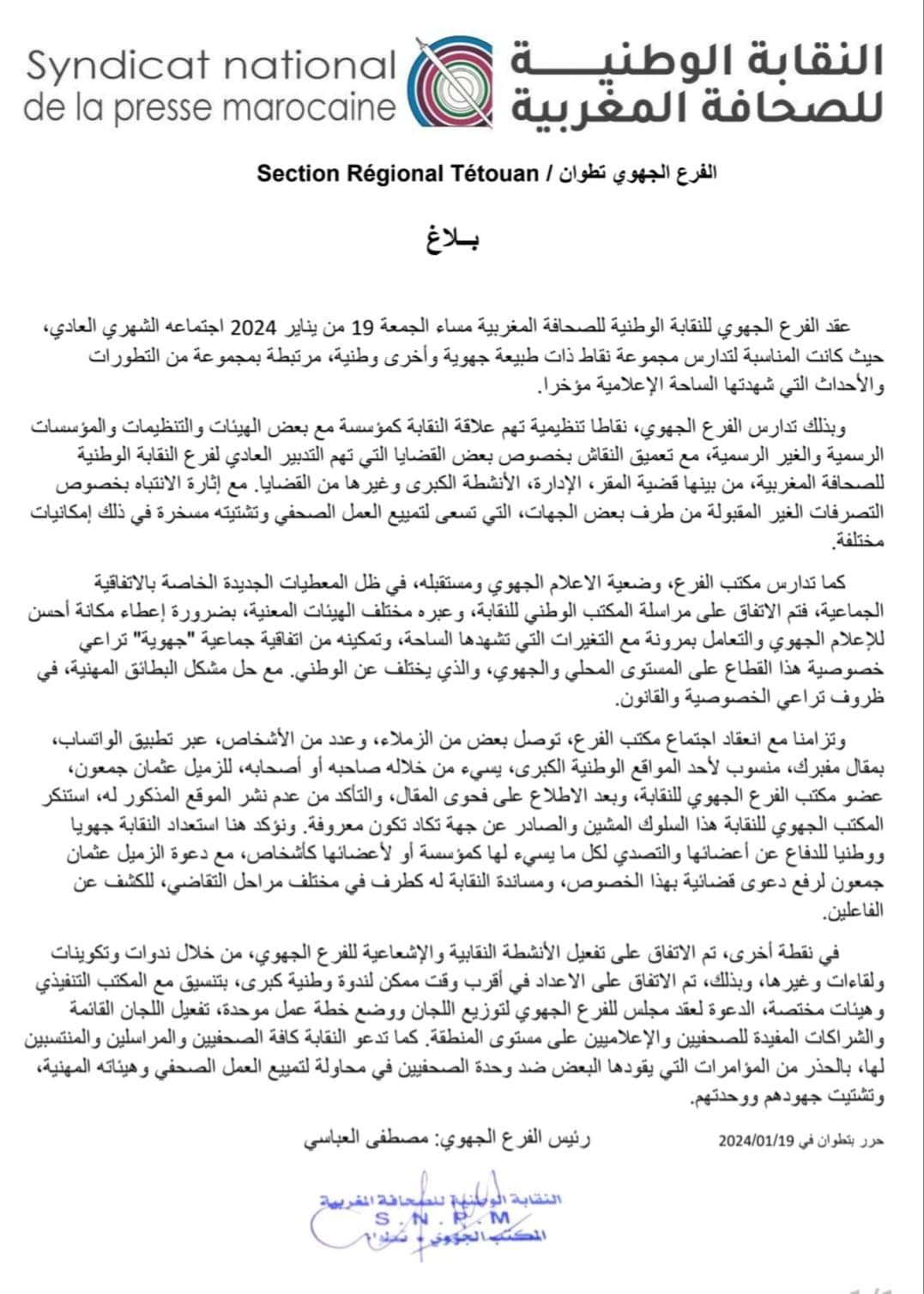 حرر بتطوان في 19/01/2024 رئيس الفرع الجهوي: مصطفى العباسي