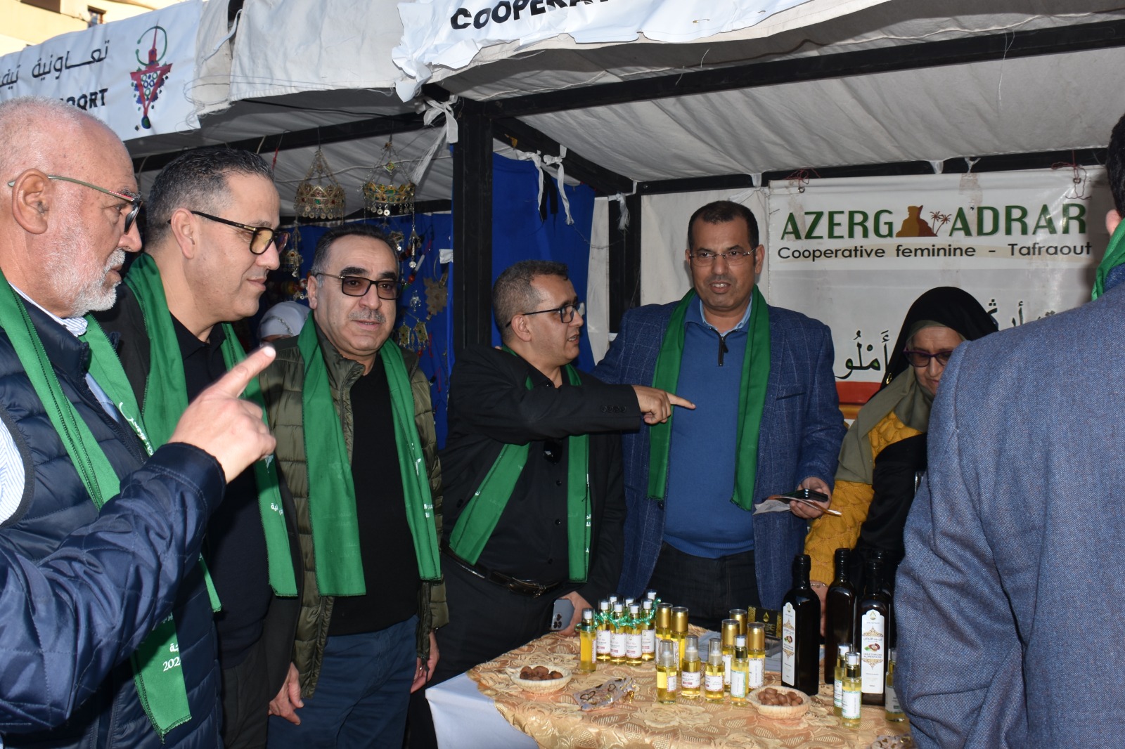 اليوم الختامي لفعاليات المعرض التضامني عرف حضور وفد من رؤساء مجالس العمالات و الأقاليم يتقدمهم رئيس المجلس الإقليمي لتيزنيت إلى جانب رئيس مجلس عمالة الرباط، الذي يرأس في الآن نفسه جمعية رؤساء مجالس العمالات والأقاليم بالمغرب، ورئيس مجلس عمالة طنجة، ورئيس المجلس الإقليمي فحص أنجرة، ورئيس المجلس الاقليمي لتطوان، ونائب رئيس مقاطعة بني مكادة بطنجة، ومدير الغرفة الجهوية للصناعة والتجارة بجهة طنجة، و أعضاء عن المجلس الاقليمي لتيزنيت الذين قاموا بزيارة لمختلف اروقة المعرض الاضامني الذي عاشت على ايقاعاته الثقافية التراثية ، و توجهه التسويقي الترويجي ، و محتواه الاقتصادي التضامني ، عاصمة البوغاز طنجة من 18 الى 28 يناير 2024 ، وذلك تحت شعار : ” تعاون تضامن من أجل ضحايا الزلزال 2023″