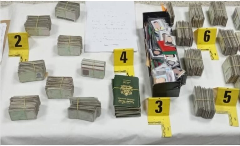 وحسب ذات المصدر، فقد مكنت عملية التفتيش المنجزة بمنزل المشتبه فيه عن العثور بحوزته على 942 وثيقة تعريفية وثمانية جوازات سفر في اسم الغير، علاوة على مجموعة من الصور الفوتوغرافية ونسخ من وثائق إدارية.