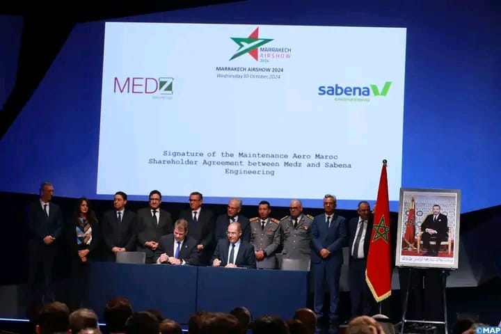 شهدت مدينة مراكش،مساء أمس الأربعاء، توقيع مجموعة من اتفاقيات الشراكة البارزة في مجال صناعة الطيران، وذلك في إطار الدورة السابعة للمعرض الدولي للطيران والفضاء “مراكش إير شو 2024”. حضر التوقيع رئيس الحكومة عزيز أخنوش، ووزير الصناعة والتجارة رياض مزور، إلى جانب شخصيات مدنية وعسكرية رفيعة المستوى من المغرب وخارجه.