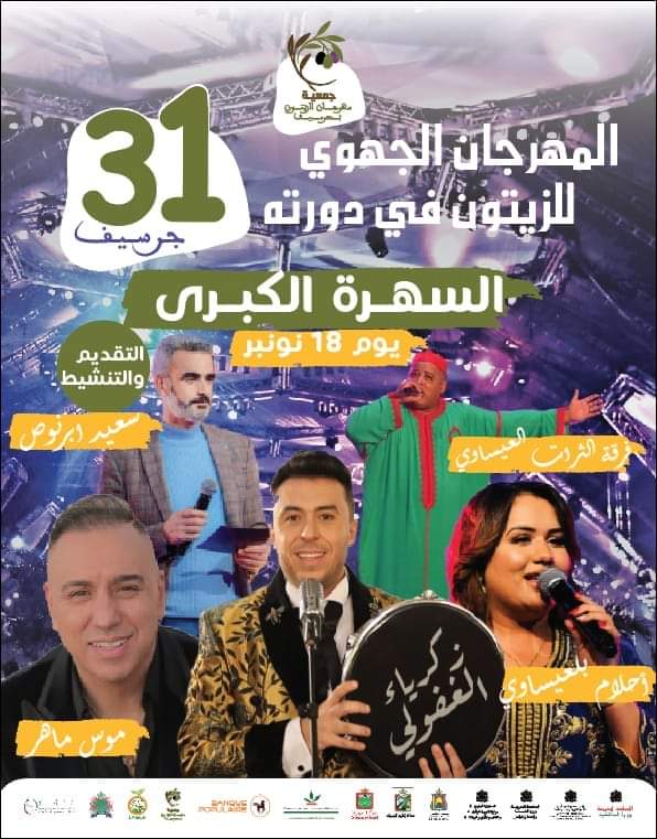 و بالمناسبة، ستنظم سهرة فنية كبرى يوم 18 نونبر القادم، في إطار احتفالات الشعب المغربي بعيد المسيرة الخضراء، بمشاركة الفنانين زكريا الغافولي و موس ماهر و أحلام العيساوي، بالإضافة إلى نجم التراث العيساوي ابراهيم بكري، أما تقديم السهرة فقد أسندت للإعلامي و الفنان المسرحي سعيد أبرنوص .