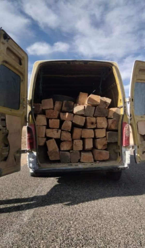 وأسفر تفتيش المركبة عن العثور على كميات كبيرة من روافد شجرة الأرز، التي يشتبه في قطعها بشكل غير قانوني بغرض التهريب.