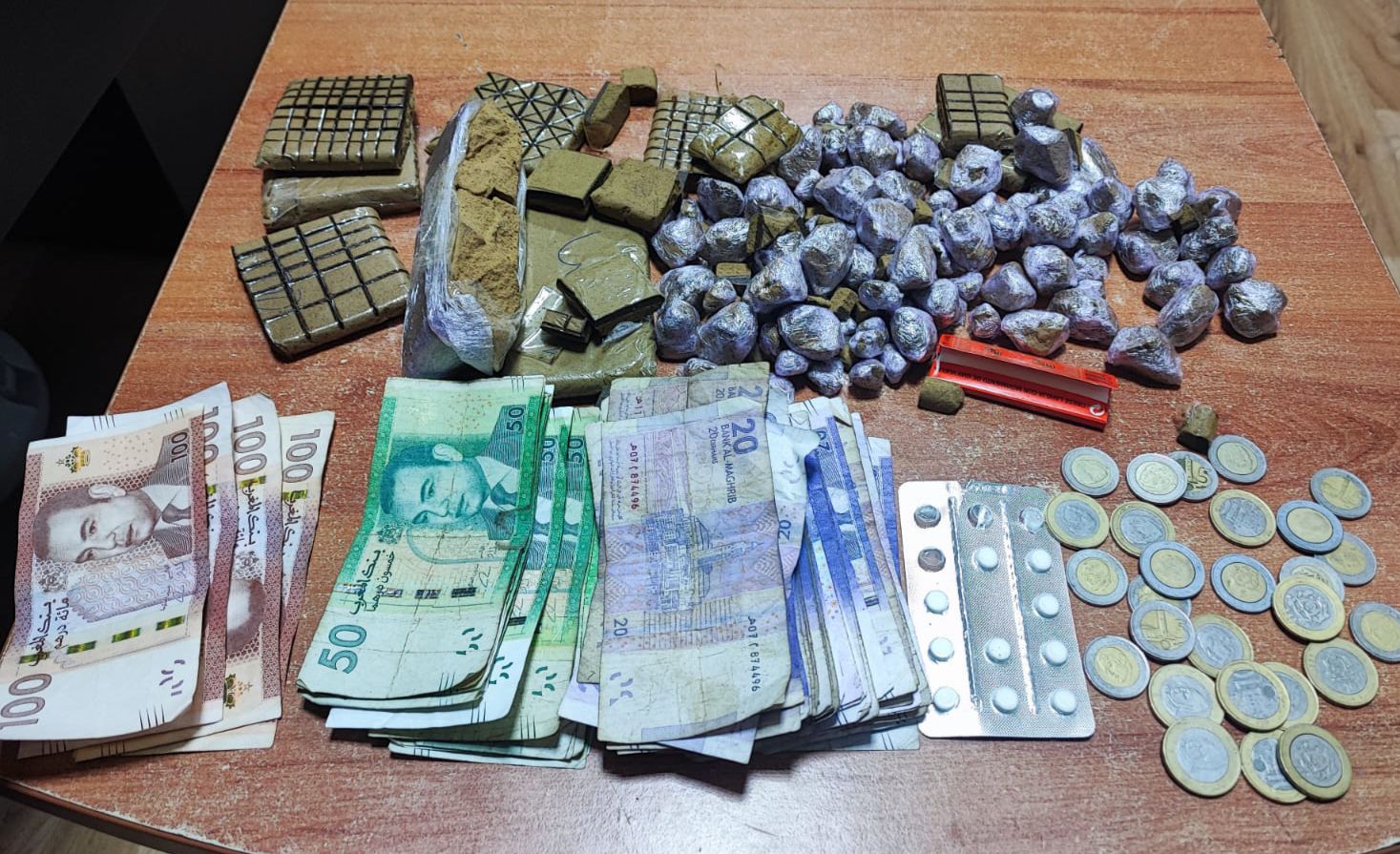 كما تم العثور على مبلغ مالي يعتقد أنه من عائدات عمليات الترويج، إلى جانب أسلحة بيضاء كبيرة الحجم، مما يعكس خطورة الأنشطة الإجرامية التي كان الموقوفان يمارسانها.