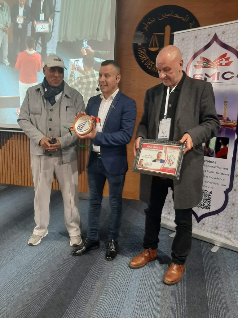 وكذلك تم تسليم شهادات التكوين للاطر الرياضية الحاضرة من طرف المؤسسة السويسرية المغربية للكوتشينغ، تقديرًا للمجهودات التي بذلوها في مجال تطوير كرة القدم.