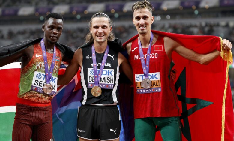 وفي الوقت الذي يبحث فيه الجمهور المغربي عن ميدالية جديدة، جاء التألق من وراء الحدود، فقد منح إلياس العوني، ابن الفقيه بن صالح، نحاسية بطولة العالم في الماراثون،