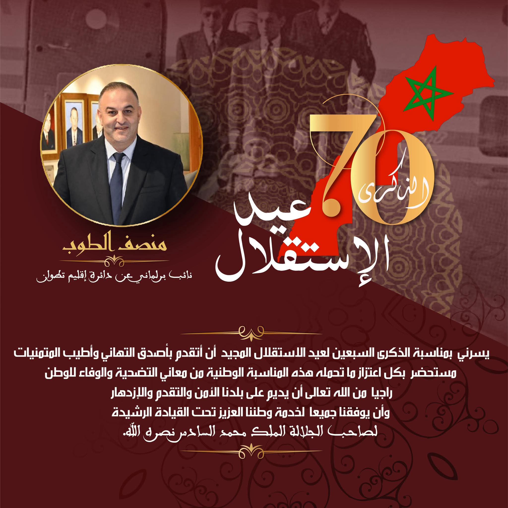 بمناسبة احتفال الشعب المغربي بالذكرى المجيدة لعيد الاستقلال، رفع النائب البرلماني منصف الطوب برقية تهنئة وإجلال إلى السدة العالية بالله، صاحب الجلالة الملك محمد السادس نصره الله، معبرا عن خالص التبريكات وأصدق المتمنيات بهذه المناسبة الوطنية التي تجسد معاني التحرر والوفاء للوطن.