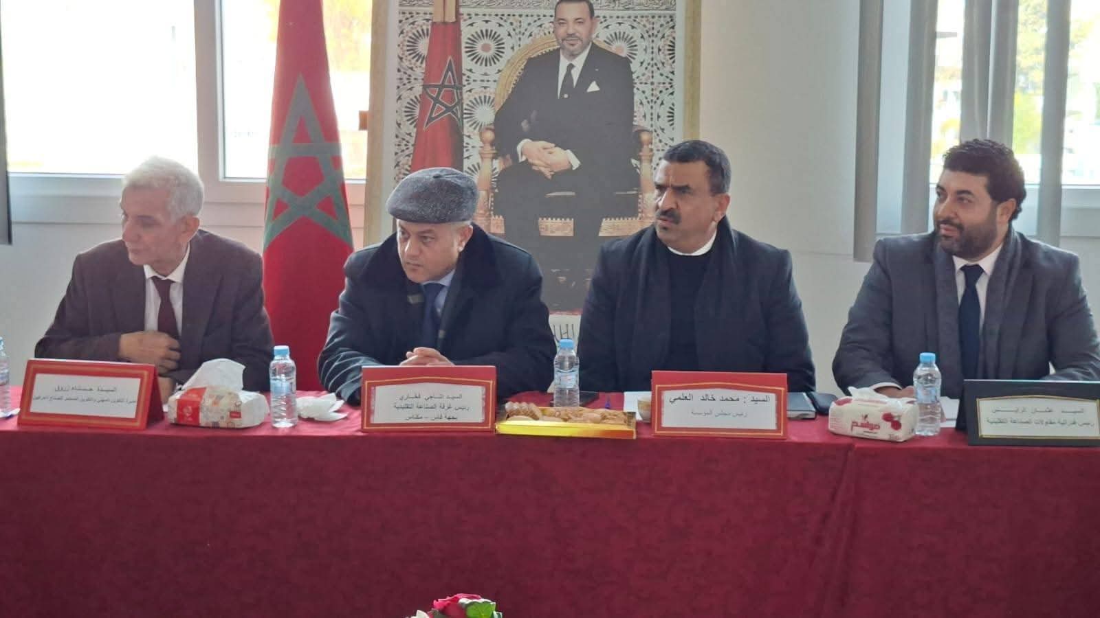 انعقد يوم الخميس 22 يناير 2026 بمقر المعهد المتخصص في فنون الصناعة التقليدية بمكناس اجتماع مجلس المؤسسة الخاص بالمعهد، برئاسة السيد خالد العلمي، وبحضور السيد عثمان الرايس رئيس فيدرالية مقاولات الصناعة التقليدية بالمغرب، إلى جانب عدد من المسؤولين والفاعلين في القطاع، من بينهم السيد ناجي فخاري رئيس غرفة الصناعة التقليدية لجهة فاس-مكناس، والسيدان سعيد وكريم من قسم التدرج المهني والمساعدة على الإدماج بالوزارة الوصية، وعبد الرحيم بلخياط المدير الجهوي للصناعة التقليدية والاقتصاد الاجتماعي والتضامني بفاس، وعبد الحق ببح المدير الجهوي للصناعة التقليدية بمكناس، ونبيل أبا أحمد ممثل جماعة مكناس، بالإضافة إلى أعضاء المجلس وأطر الغرفة والمديرية والمعهد.