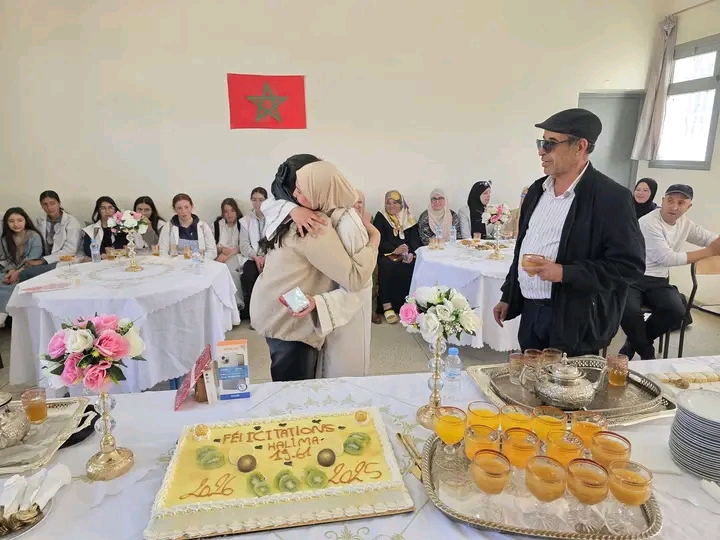 وفي التفاتة تقديرية، نظمت أسرة التلميذة حليمة أبطوي حفلة شاي على شرف الأطر الإدارية والتربوية، إضافة إلى عدد من التلميذات والتلاميذ، حيث تحولت قاعة الأساتذة إلى فضاء للتواصل الإنساني وتبادل التقدير، سواء بين الإدارة والأساتذة اعترافاً بمجهودات التأطير والمواكبة، أو بين التلاميذ احتفاءً بفرحة التفوق، أو مع الأسرة باعتبارها شريكاً محورياً في المنظومة التربوية.